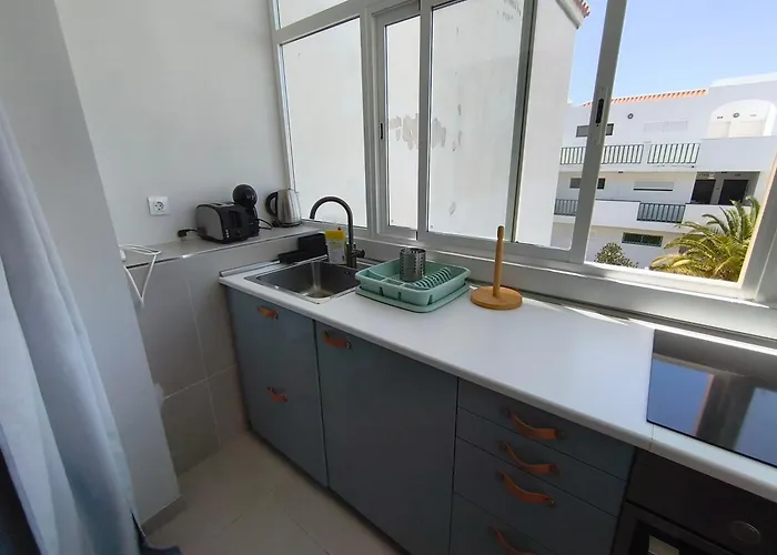 必要な台所用品がすべて揃った設備の整った台所もあります。 Casa Del Marアパートメントからフェルテベントゥーラ空港も5kmの距離にあります。 庭園の眺めを望むテラスもあります。